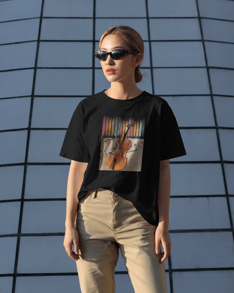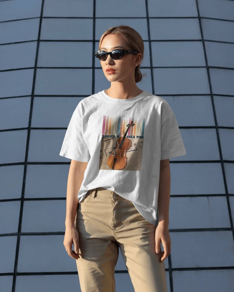 This unisex oversized “Magical World” T-shirt is a ideal choice for all who love a good design or wish to showcase their love for Music or timeless Musical instruments. Made from 100% combed Cotton, its breathable fabric feels light on the skin and easy to maintain.