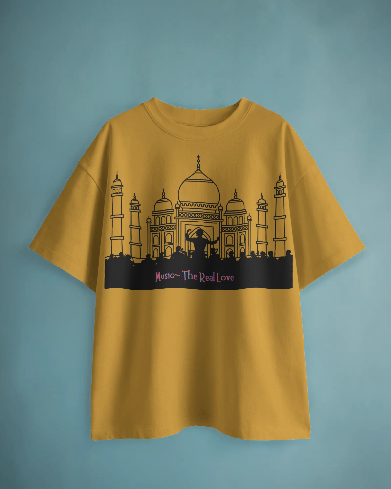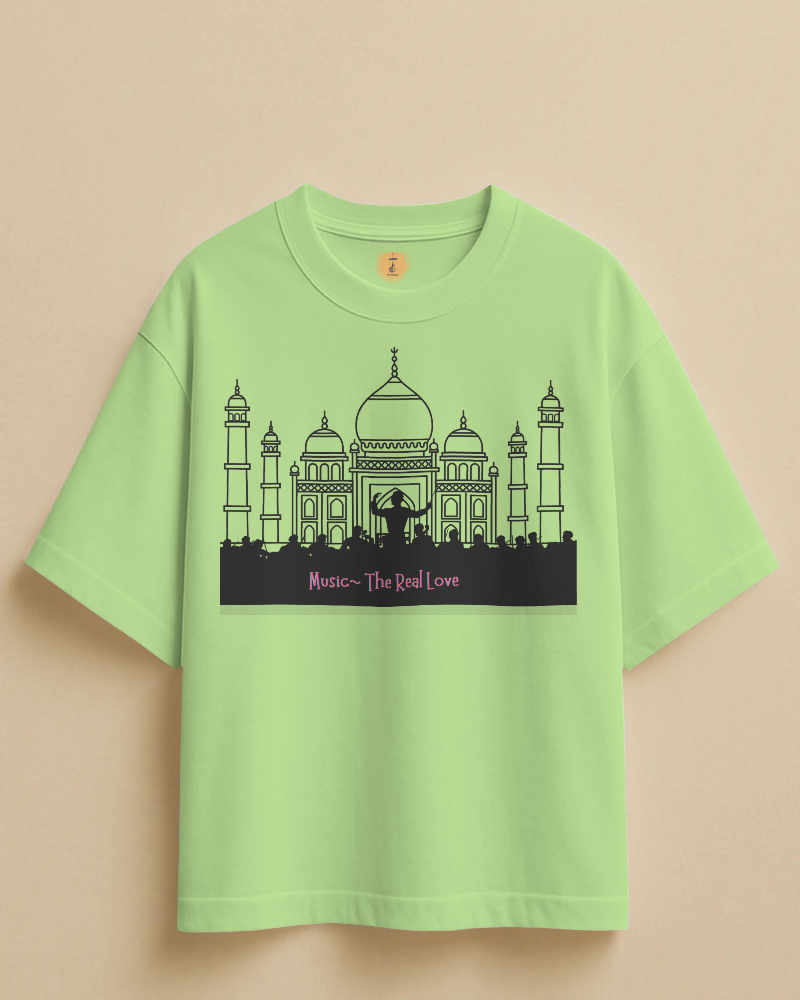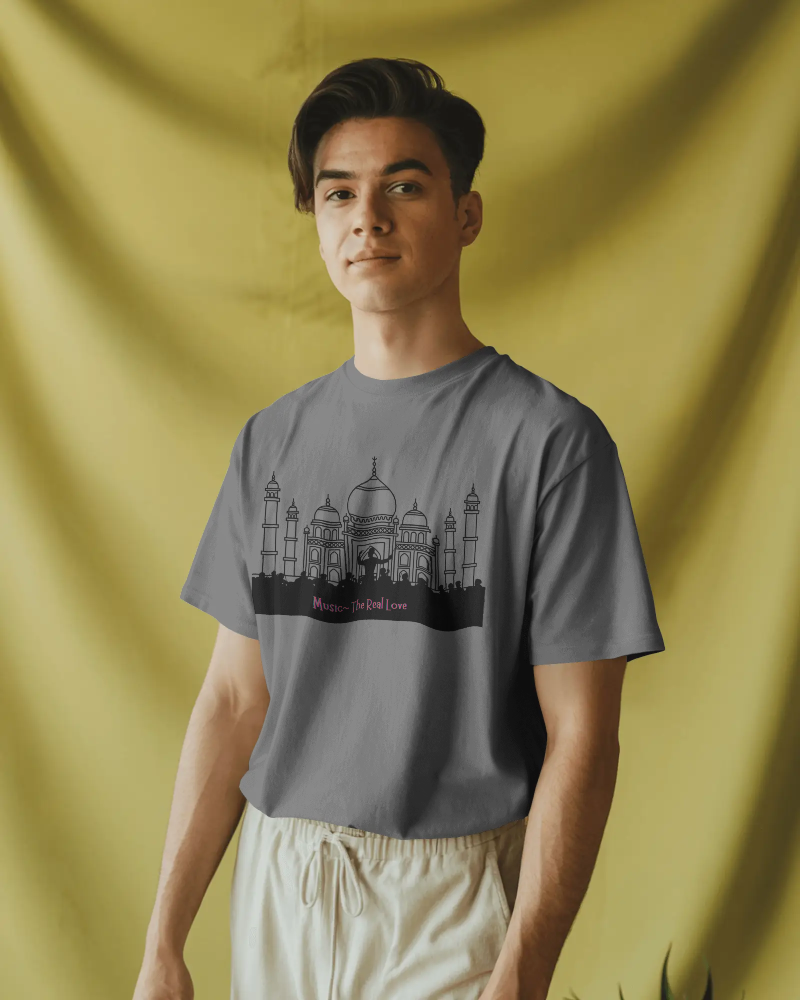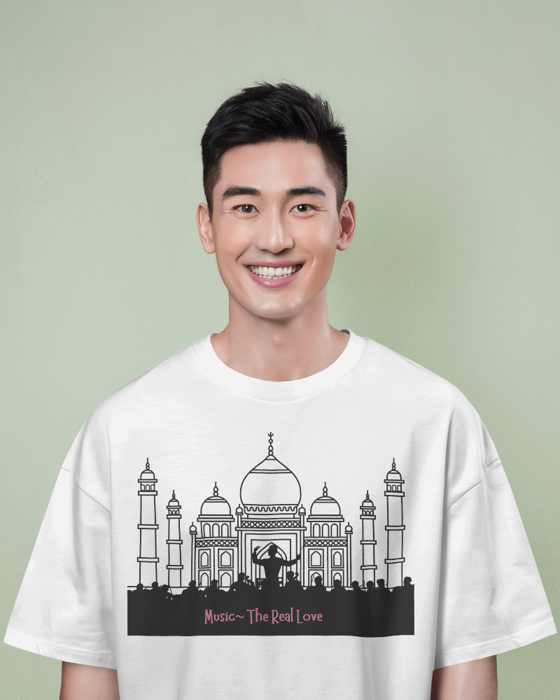 The Men’s Oversized “Music-The Real Love” t-shirt comes with a unique design of Concert Music in one the most iconic Architecture famous for love. It’s one of a Kind design will make you stand out among the crowd. Made from 100% combed Cotton, its breathable fabric feels light on the skin and easy to maintain.